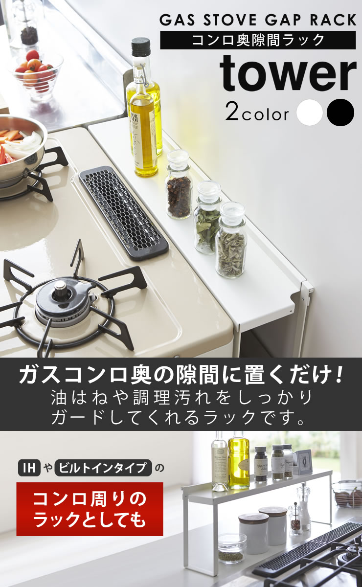 タワー 山崎実業【tower コンロ奥隙間ラック コンロ奥ラック 高足 コンロ奥 隙間 コンロ 隙間 ガスコンロ すきま ラック コンロ奥カバー 隙間ラック キッチン 収納 北欧 シンプル yamazaki】ガスコンロ奥の隙間に置くだけ。