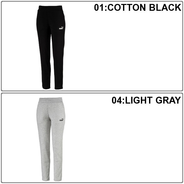 プーマ(PUMA) レディース ESS スウェットパンツ ●素材 ・裏毛/コットン68%、ポリエステル32% ●サイズ ・S/M/L ●カラー ・01:COTTON BLACK ・04:LIGHT GRAY コットン・ポリエステルの裏毛素材を使用したスウェットパンツ。