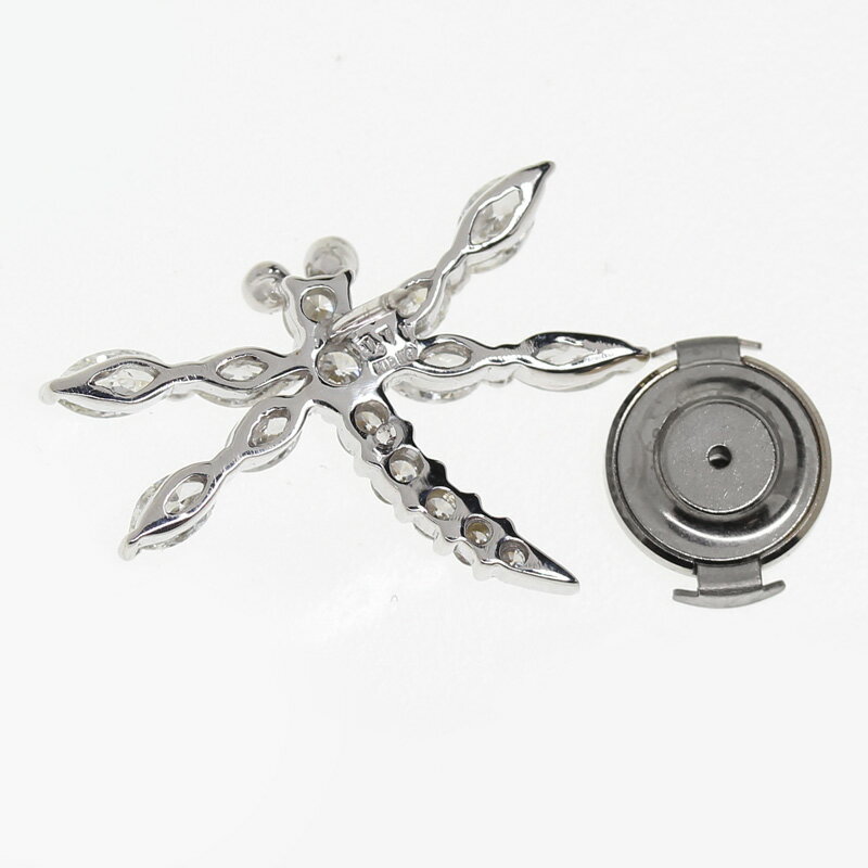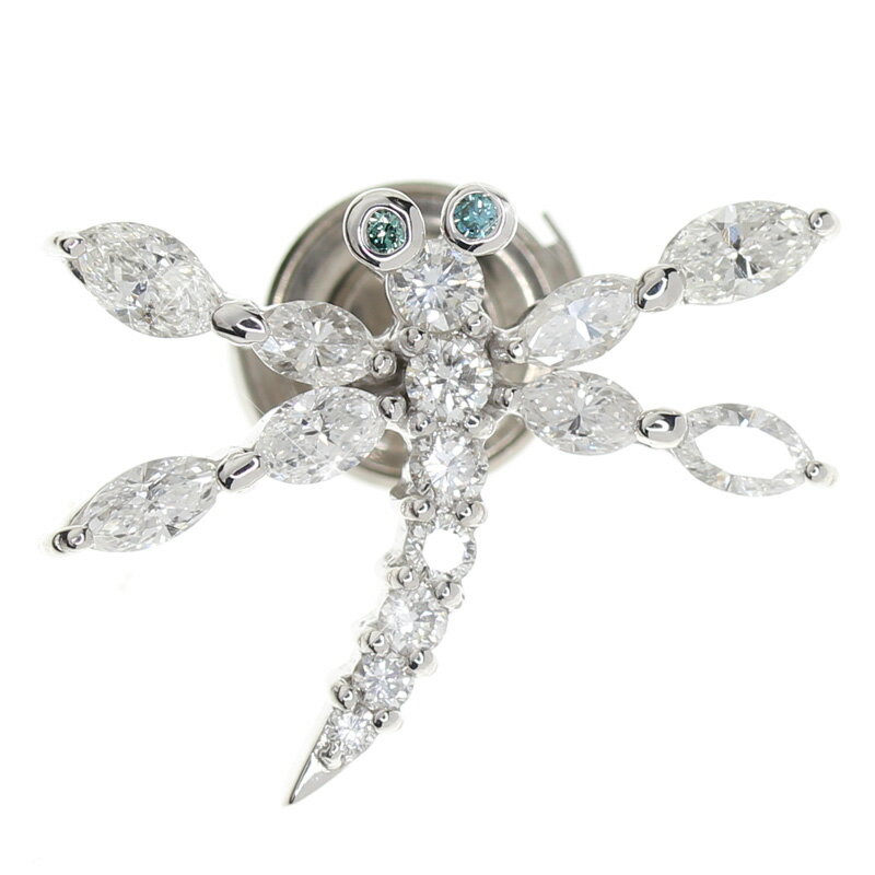 【ジュエリー】ダイヤモンド 1.01ct トンボ とんぼ 蜻蛉 ドラゴンフライ タイタック ネクタイピン ピンブローチ K18WG トリートブルーダイヤ【中古】ZPZ