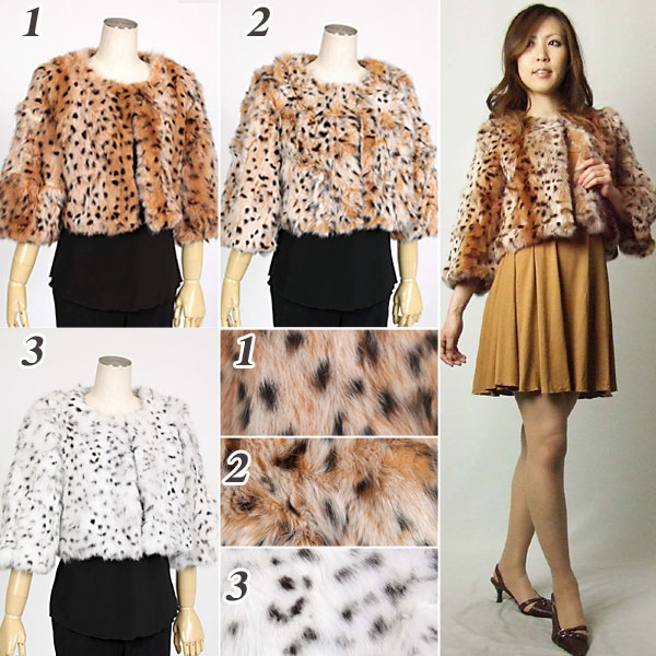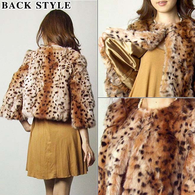 ふわふわで心地良いラビットを使用した 人気のアニマルプリント七分袖ジャケット! 襟なしのボレロ丈アウターは、 上品ながらカジュアルテイストの コーディネートが楽しめます。