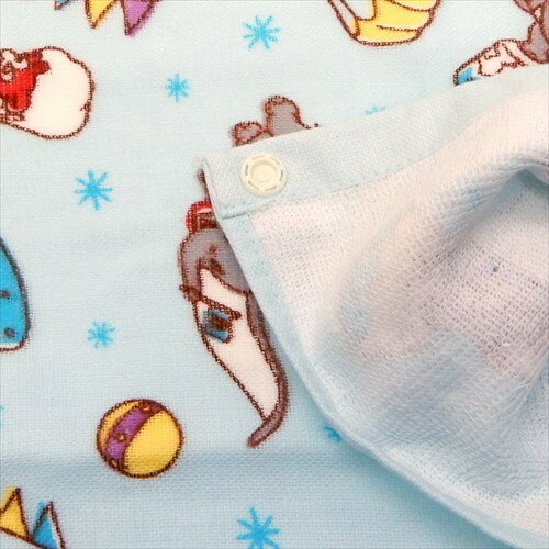 彡こちらはループ&スナップボタン付きの【おでかけタオル】肌触り抜群のガーゼタオルを首の後ろでボタンを留めると前掛けに大変身♪